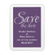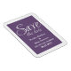 Caligrafía Salvar el imán de fecha en morado y blanco con un sofisticado diseño de tipografía. Esta elegante y moda ahorra la fecha imán es fácil de personalizar con los detalles de su boda. Para obtener más opciones de personalización, haga clic en el botón Personalizar.