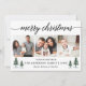 Moderna caligrafía Script Merry Christmas 3 Photo Holiday Card incluye Árboles de pino acuarela