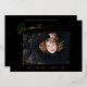 Asombrosas, modernas y elegantes tarjetas de Relieve metalizado de invitación de graduación dorado (elección de Relieve metalizado de plata dorada o rosa), con elementos de diseño de texto moderno con escritura caligráfica de tinta. La foto del graduado se acentúa artísticamente con una frontera parcial delicada y minimalista. La parte posterior de la tarjeta ofrece espacios de texto personalizados para obtener información sobre su graduación o puede ser borrado si desea escribir un mensaje a mano. Negro y blanco o personalizar fácilmente el fondo para que coincida con el color primario de su escuela o cualquier color de su elección. Perfecto para estudiantes de secundaria, universitarios y universitarios.