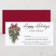 Moderna y elegante caligrafía Ink Script Watercolor Pines Winter Greenery con Ornamentos de Navidad Borgoña Cinta Roja Bow, Cones de Pino y Holly Berries Felices Vacaciones Certificado de Regalo de Negocios con Sobre. Roja