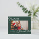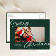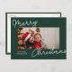 Caligrafía verde Feliz Navidad Festividad Festividad Festividad moderna postal. Envíe saludos de vacaciones a sus seres queridos con esta tarjeta festiva y moderna. Todos los textos están preorganizados para que puedas personalizarlos fácil y rápidamente con tus propios detalles. Felices fiestas!