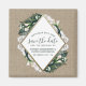 Calla Lily Burlap Wedding Save the Date Magnets - cuenta con un fondo de burlap con elementos de encaje y floral de helecho, flores solteras de la liga de la calla, aliento del bebé, hojas y más. El cuadro de texto es un elegante triángulo con un falso marco impreso en oro de Relieve metalizado. Esta colección presenta una elegante papelería para los bosques, bohemias (boho), rústicos, rústicos y otros temas bodas similares.
