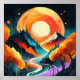 Título: Rayos de luz en el camino a la Torre Descripción: Antecedentes: En un impresionante panorama de puesta de sol, el cielo cuelga en una impresionante mezcla de naranja, rojo y morado. En medio de ella, el sol abrasador vertió sus rayos cálidos y su luz brillante radiada en todas direcciones. Elementos clave: Un camino de piedra con imponentes arboles de arce japoneses se extiende en primer plano. La abundante luz nocturna se refleja entre los colores cambiantes de las hojas, creando un ambiente impresionante y sereno a lo largo del camino. A lo lejos, se ve una majestuosa torre tradicional sobre una colina que se eleva entre las siluetas de los árboles. La luz nocturna que se refleja en torno a ella le da un toque mágico a la estructura. Típico toque japonés: un peatón vestido con ropa tradicional japonesa camina serenamente por el camino, disfrutando de la impresionante belleza de la puesta de sol. Las flores de cerezo y las plantas japonesas le dan un encanto especial a este impresionante paisaje. Adición: En la esquina del poster, un acento caligráfico japonés con las palabras "夕 焼 け の 道" (Yuuyake no Michi) que significa "Twilight Road" se exhibe con gusto, agregando una impresión romántica a la escena mostrada. Todo: Este poster muestra la belleza natural de Japón con una impresionante puesta de sol, decorado con torres tradicionales y caminos encantadores. La combinación de elementos naturales y arquitectura clásica ofrece un ambiente tranquilo e impresionante. ¿Esta descripción coincide con lo que imaginaste? Si hay algo más que quieras agregar o cambiar, ¡por favor avísenme!