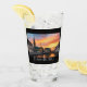 Hermosas gafas de ale escénicas muestran fotos de la puesta de sol en los edificios frente al mar en Hamburgo, Alemania. Borde negro con superposición de texto.