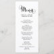 Esta carta de menú floral de caligrafía meridional es perfecta para un boda moderno. El diseño presenta una tipografía rústica y elegante en blanco y negro con bonitas flores de acuarela blancas en el fondo. Este menú se puede utilizar para la recepción de bodas, la cena de ensayo o cualquier evento.