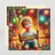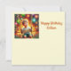 Un chico lindo se balancea en un columpio de árboles y celebra el cumpleaños de Callum. Los saludos en la tarjeta son "Feliz Cumpleaños Callum". En la parte trasera de la tarjeta hay una pequeña versión de la imagen delantera, y mucho espacio para escribir un mensaje. Hecho con la ayuda de AI Bing.