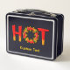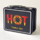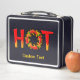 Caliente con la letra O hecha de un círculo de llama con pimientos de chile.