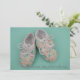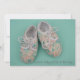 Hermosa fotografía en color pastel de unos bonitos zapatos de bebé sobre un fondo verde azulado pálido. Los zapatos lacados están recubiertos de flores dulces, rosadas, verde azuladas de melocotón y azules. El mensaje en el frente dice: "Una niña dulce está en camino..." Perfecto para una invitación de embarazo de bebé, invitación para una fiesta o una ducha. Creé un lindo patrón de puntos de polka/manchas pastel para la espalda. La parte trasera también es totalmente personalizable para que pueda introducir toda su información en un flash! Trato de crear diseños modernos y originales pero divertidos, lindos y extravagantes.