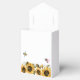 La temática de las abejas rústica y boho revela una caja de favores con un ilustracion acuarela de girasoles amarillos y aliento del bebé con abejorros.