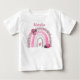 Esta pequeña camarita señora rosa con playera de bebé arcoíris es tan dulce como el bebé que la usa. Personalízala con el nombre que desees y regala como un obsequio memorable para cualquier padre nuevo.