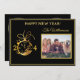 Easy to Change the Year of this Happy New Year Script Photo Collage Multi-Photo Holiday Card — con escritura moderna — el año escrito con la "ayuda" de un reloj — y cuatro de tus fotos favoritas — una en la parte delantera y tres en la parte trasera. Es una manera feliz y alegre, pero sofisticada, de enviar los deseos de año nuevo a amigos y familiares. Si necesitas ayuda de diseño, envía un chat o un correo electrónico a charmdesignstudio@rcn.com y estaremos encantados de asistirle.