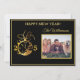 Easy to Change the Year of this Happy New Year Script Photo Collage Multi-Photo Holiday Card — con escritura moderna — el año escrito con la "ayuda" de un reloj — y cuatro de tus fotos favoritas — una en la parte delantera y tres en la parte trasera. Es una manera feliz y alegre, pero sofisticada, de enviar los deseos de año nuevo a amigos y familiares. Si necesitas ayuda de diseño, envía un chat o un correo electrónico a charmdesignstudio@rcn.com y estaremos encantados de asistirle.