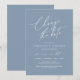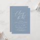 Esta es la invitación de la fiesta de la boda Reprogramado, guardar nuestra nueva tarjeta de fecha (pospuesta / pospuesta) (Cambiar la fecha), en el moderno minimo simple y romántico diseño azul polvoriento y minimalista. Es la manera perfecta de hacer que el evento reprograme la invitación a sus amigos y familiares.
