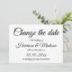 Cambiar la fecha, Guardar la fecha, personalizado elegante clásico guión caligrafía Boda tarjeta de Invitación. Blanco y negro