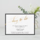 En esta pieza distintiva, se utilizó un elegante tipo de letra caligráfica para crear un gráfico que dice "cambiar la fecha". La imagen ha sido embellecida con un falso efecto de oro metálico. Se han añadido rayas de oro de coordinación que crean una especie de banda para obtener un resultado subestimado y sofisticado. Utilice los campos de plantilla para agregar sus datos personales. El fondo y el texto del cuerpo pueden cambiarse a cualquier color que prefiera. Por favor, contacte con cualquier solicitud especial o para personalizar la asistencia. // 141 //