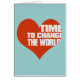 Un diseño gráfico rojo de gran corazón con la cita: momento de cambiar el mundo