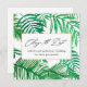Anuncio de cambio de fecha de boda de aplazamiento con elegante caligrafía y hojas de palma tropicales chic de acuarela. Este hermoso anuncio es una forma sencilla de informar a los invitados que la fecha de su boda se está reprogramando debido a circunstancias imprevistas.