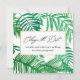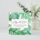 Elegante caligrafía con anuncio de posposición de boda de cambio de fecha de hojas de palma tropicales de acuarela chic. Este hermoso anuncio es una forma sencilla de informar a los invitados que la fecha de su boda se está reprogramando debido a circunstancias imprevistas.