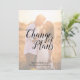 Una tarjeta de anuncio de aplazamiento de boda Cambio de planes para enviar por correo a sus familiares y amigos. El texto está dispuesto de manera elegante aprovechando las curvas y líneas de la caligrafía. La imagen del fondo añade un toque personal y un recordatorio de que es el mismo amor, pero una fecha diferente.