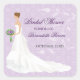 Una novia camina serenamente por el pasillo en este encantador pegatina de ducha de novia. El fondo es un bonito de color violeta adamascado con viñas florales y poco profundas, mientras que el ramo de la novia y los aretes combinan con el violeta. Disponible en colores alternativos con productos y opciones para diferentes etnias de novias. Póngase en contacto con esta tienda para personalizar este pegatina a colores de novia específicos. com