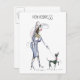 Fotografía de una pintura original de Pen/acuarela del artista inglés Terry Donnelly "Walking the Dog" (Caminando al perro) de la serie Vintage