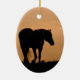 El semental salvaje Cloud de las montañas Pryor de Montana camina en la ladera de la colina en silueta al atardecer. Imagen de Carol Walker en este adorno de vacaciones.