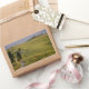 Foto rectangular pegatina de recuerdo del camino de grava blanca (o strada bianca) a la agroturismo Terrapille con cipreses a su lado, a la luz de la noche en el valle de Valdorcia (Orcia Valley) cerca de Pienza en la Toscana, Italia. La carretera también se llama Gladiator Road porque la película The Gladiator fue parcialmente grabada aquí.