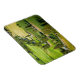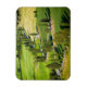 Imán fotográfico rectangular con un sinuoso zigzag, camino bordeado de cipreses a través de los campos verdes en Monticchiello, Toscana en Italia.