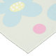 Una armoniosa mezcla de flores azules suaves con centros amarillos pálidos, atados con arcos rosas dulces, dispuestos en diferentes tamaños. Los delicados ramos se entremezclan con gusto a través de un suave fondo verde pastel amarillo-verdoso, que irradia un sentimiento de calma y simpleza.