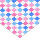 A checkerboard pattern of pink, blue, and white squares creates a vibrant and lively visual effect, conveying playfulness and energy.