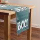 Diseño de texto para Halloween con decoración de gato, araña, búho y redes de arañas sobre fondo azul.