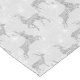 Holiday table runner is shown with a festive silver faux glitter deer print.