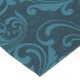 Intricate dark teal floral damask pattern, featuring symmetrical, swirling leaf motifs against a deep background, conveying elegance and sophistication.