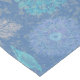 Corredora de mesa con tonos de hojas y flores azules.