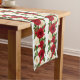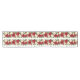 Este corredor de mesa se muestra con una hermosa impresión de rosas rojos y blancos y bayas de Navidades. Color Blanco Tamaño 14" x 72"