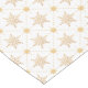 Corredora de mesa con elegantes copos de nieve de imitación de Relieve metalizado de oro falso y patrón de estrellas sobre fondo blanco.