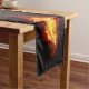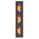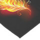 Una brillante pluma de pavo real hecha de fuego y llama sobre fondo negro.