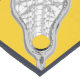 Girls lacrosse table runner party or event decor, featuring women's lax stick and ball design pattern on yellow background.