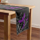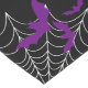 Este corredor de mesa negra de Halloween presenta intrincadas telarañas y juguetones murciélagos morados, perfecto para crear un ambiente espeluznante para tu fiesta de Halloween o cena festiva.