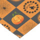 Diseño de tablero de ajedrez de Halloween en naranja y negro con jack-o-lantern, bruja, luna llena con murciélagos y una red de araña con una araña escalofriante. ¡Tengan un Halloween de miedo!