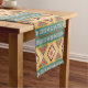 A Teal And Tan Ikat Navajo Patterned Table Runner For That Southwestern Decor