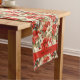 Navidades Poinsettias Corto Table Runner. Clásico, atemporal y elegante para la temporada de vacaciones. Un patrón de flores acuáticas blancas y rojas de invierno/Poinsettias con bayas y vegetación / follaje hace la base del corredor. A cada lado hay una cinta impresa con texto en personalizable, déjela como está con Feliz Navidad o añada la tuya propia. Este corredor de tablas y diseño se presenta en 3 tamaños y longitud. Decore su casa de vacaciones con este corredor de mesa atemporal y decorativo. Consulte los demás productos de esta colección para obtener productos coincidentes. Haz un tema cohesivo con la decoración de tus Navidades o recibe muchas ideas de regalo.