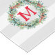 Elegantes bayas rojas y Navidades de evergens coronaron con monograma de personalizable. Fondo de rayas blancas y grises claras.
