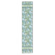 Personalizar este elegante corredor de mesa floral con un patrón de frondas de palma y frangipani sobre un fondo azul cielo con tu nombre familiar. Ideal para la decoración con albornoces de playa.