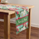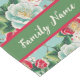Personalizar este elegante corredor de mesa con un patrón de camellias rojas y blancas en un fondo verde azulado con su nombre familiar.