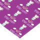 Un corredor de mesa con estampado, con un lindo ilustracion de un unicornio blanco sentado en su bulto sonriendo y luciendo feliz. Nubes sonrientes y un arcoiris sobre el cielo. El texto dice: Feliz Vibes. Adorable imagen edificante. Con un fondo morado rosado.