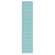Corredor de mesa con un patrón de mandala de doce puntos en turquesa, azul, blanco y tonos grises y grises sobre un fondo gris claro y plateado