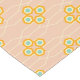 Hexagonal floral pattern with blue-green centers and orange outlines on a peach background. White lines connect the shapes, creating a geometric grid.
