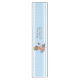 Los galones azules personalizados del vintage de la pequeña fiesta de bienvenida al bebé elegante del príncipe presentan el corredor. Un ilustracion hermoso del vintage de un bebé lindo y adorable con el pañal azul elegante y una corona del oro. ¡Él le está hablando en un teléfono retro rojo viejo que dice que él está en su manera! ¡Él está sosteniendo una pequeña maleta azul y su oso de peluche peculiar se está inclinando contra ella - para arriba lo embalan todo y alista para su llegada! El fondo es un azul bonito y los galones blancos modelan la frontera y el texto personalizable gris. Si usted necesita alguna ayuda que modifica su producto para requisitos particulares me entra en contacto con por favor a través de mi tienda y me placeré ayudar. Tengo productos a juego en mi tienda.