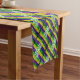 Diseño del poster del adorno del carnaval con las letras contra fondo rayado en colores azules, verdes y amarillos vivos